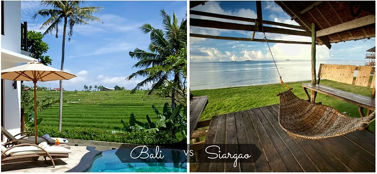Хороший отель на первой линии на Филиппинах обойдется гораздо дешевле, чем аналогичный на Бали. С другой стороны, на Сиаргао все отели сосредоточены около пляжа, других не найти, и все они немного дороже, чем отель на Бали спрятанный где-то в рисовых полях в 15-20 минутах езды до пляжа. Если вам хочется засыпать под шум прибоя, ваш выбор – Филиппины, если важнее сэкономить на проживании, то Бали.