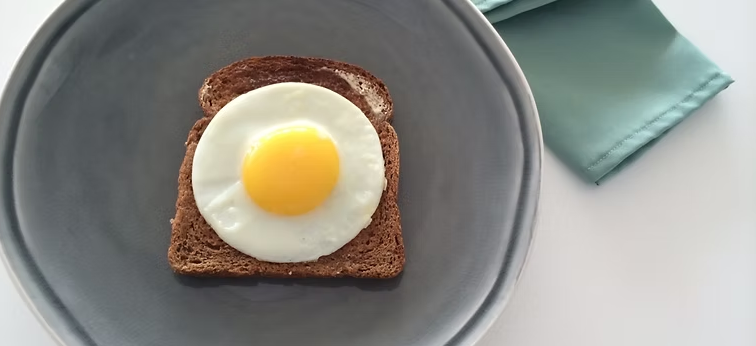Яичница с беконом или бобами, пара ломтиков цельнозернового хлеба.