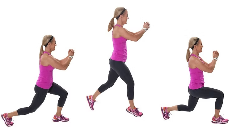 Для выполнения этого упражнения примите положение выпада – правая нога впереди, угол в колене 90˚, левая отведена назад. Вытолкните тело вверх и в прыжке поменяйте ноги местами. Важно! Следите, чтобы колено передней ноги всегда оставалось над стопой, а угол в колене не был острым. Выполняйте не менее 10 повторений.